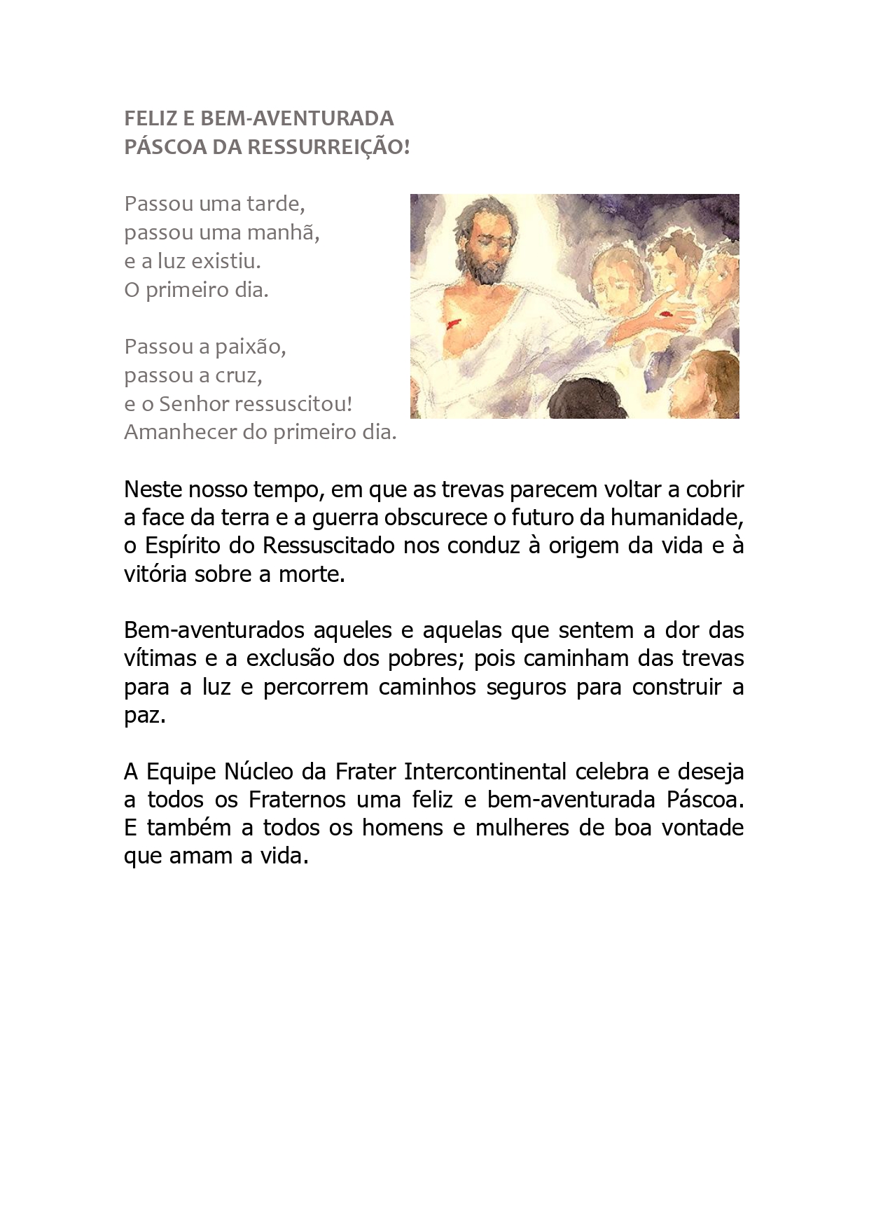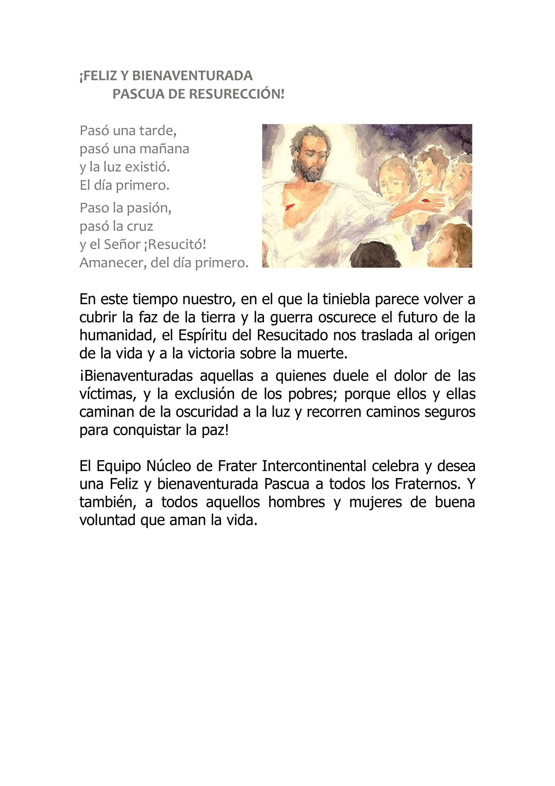 Nuestro camino espiritual de Frater está marcado por dos experiencias contrapuestas, pero a la vez admirablemente unidas y entrelazadas. Por un lado, la dureza de la fragilidad manifestada como enfermedad y discapacidad. Pero también, de manera sorprendente e inesperada, nuestra experiencia fraterna nos ha hecho descubrir, en un segundo momento, la esperanza, el sentido de las cosas, y hemos recuperado la ilusión por vivir y por luchar, por caminar con horizontes amplios y luminosos. Porque sucedió algo que lo cambió todo.